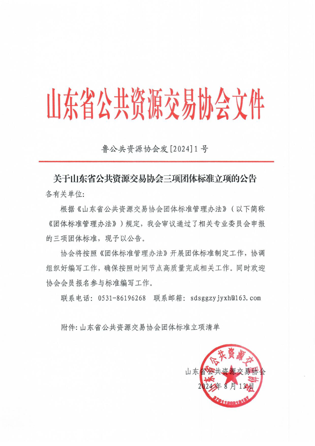 山东省公共资源交易协会关于协会三项团体标准立项的公告