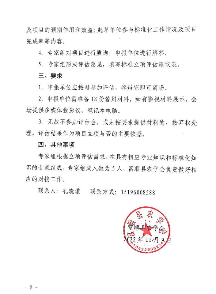 根据《富顺县农学会团体标准管理办法》有关规定,经《富顺县再生稻米》团体标准立项评估专家组评估,现我学会就《富顺县再生稻米》团体标准立项评估并予以公示(拟立项已在团体标准信息上公示了30天,本次公示时间5天)。如有单位或个人对标准项目的立项存在异议,请在公告之日起5个工作日内实名以书面方式向我学会秘书处反映,并请提供必要的证据材料和联系方式,以便核实查证,我学会将予以严格保密。