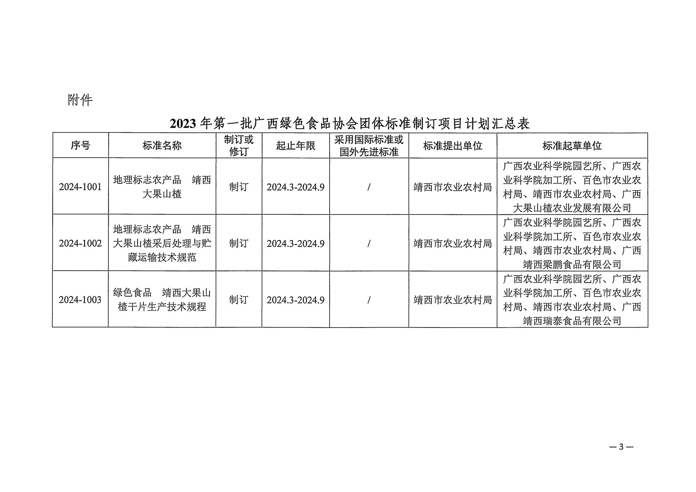 广西绿色食品协会关于下达2024年第一批团体标准制订项目计划的通知