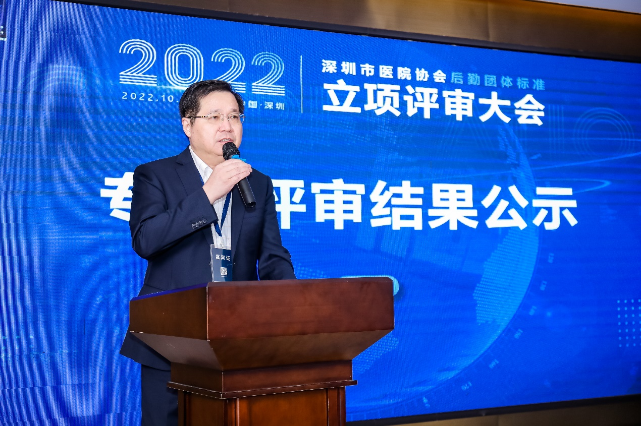 市医院协会后勤管理分会秘书何敬远对深圳市医院协会团体标准工作程序进行了详细说明,并主持了四项标准提案的立项评审。