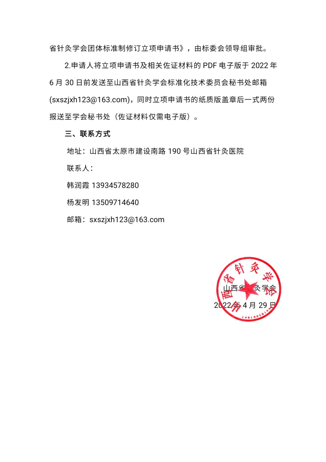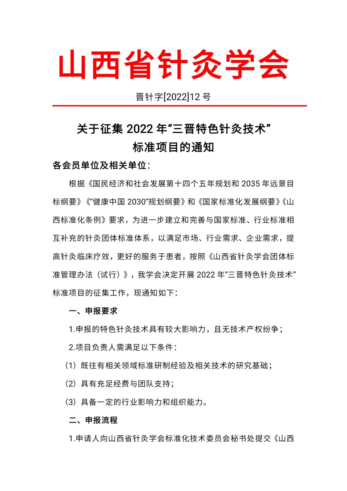 山西省针灸学会关于征集2022年“三晋特色针灸技术”标准项目的通知