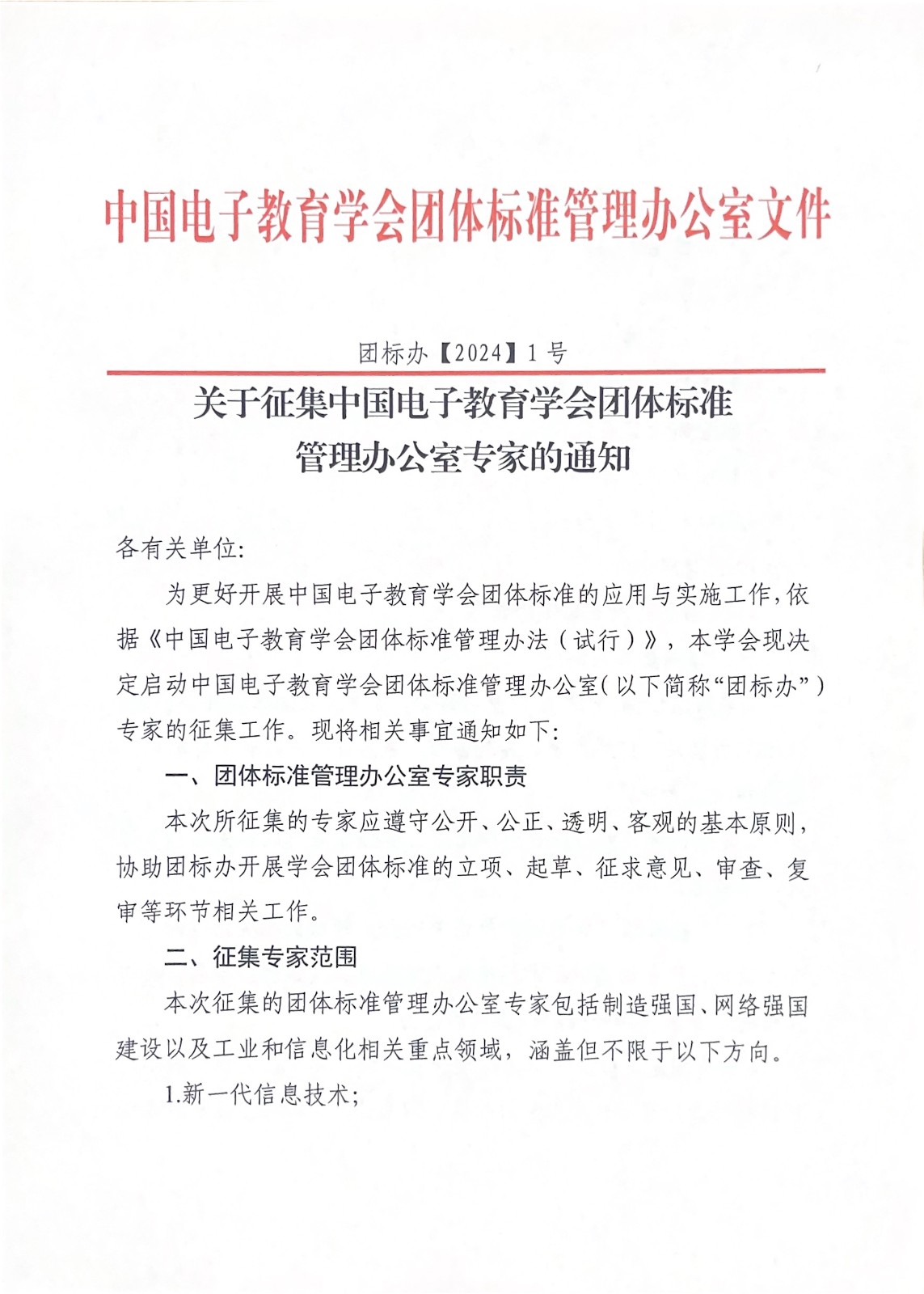 中国电子教育学会 关于征集中国电子教育学会团体标准管理办公室专家的通知