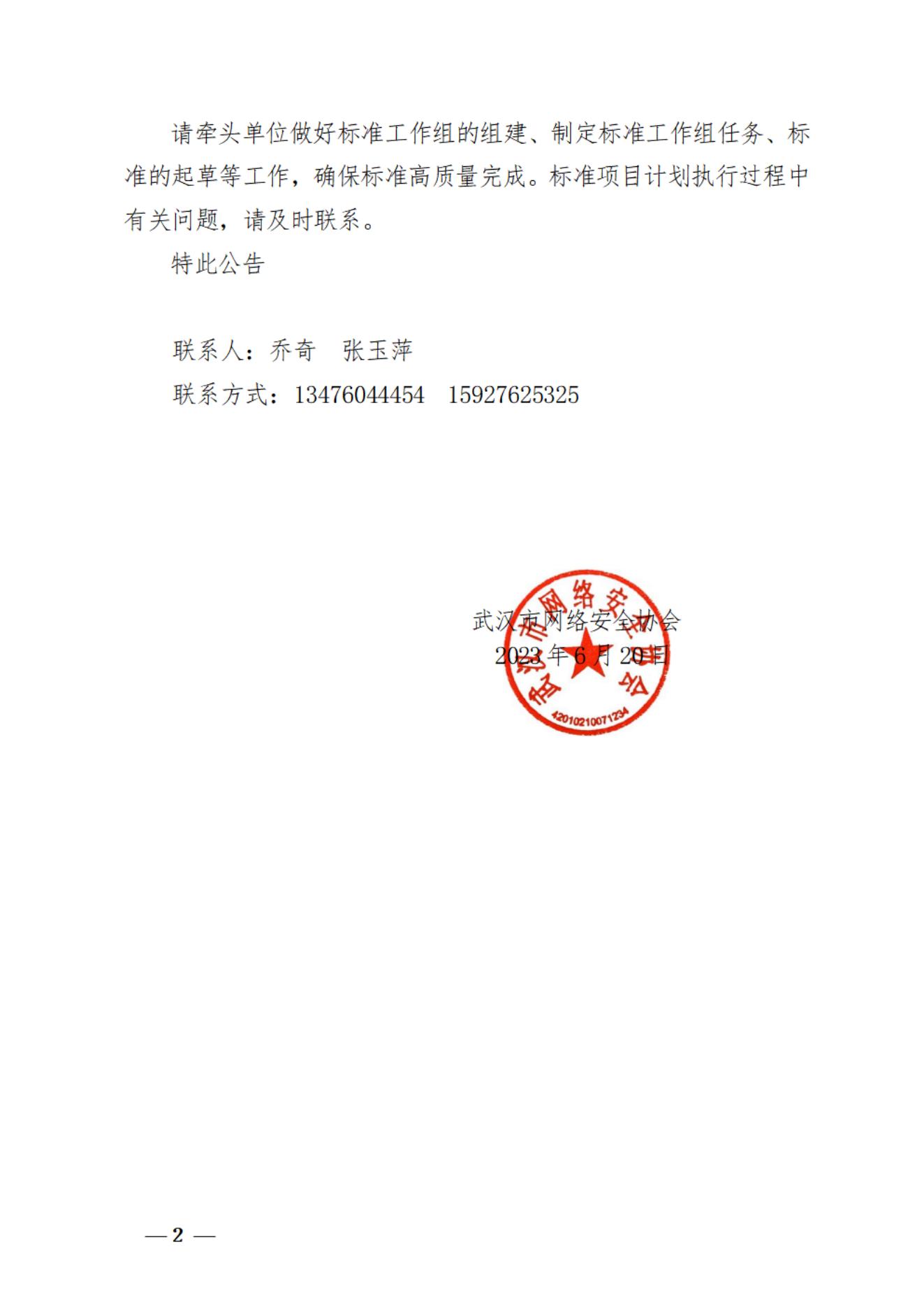 请牵头单位做好标准工作组的组建、制定标准工作组任务、标准的起草等工作,确保标准高质量完成。标准项目计划执行过程中有关问题,请及时联系。