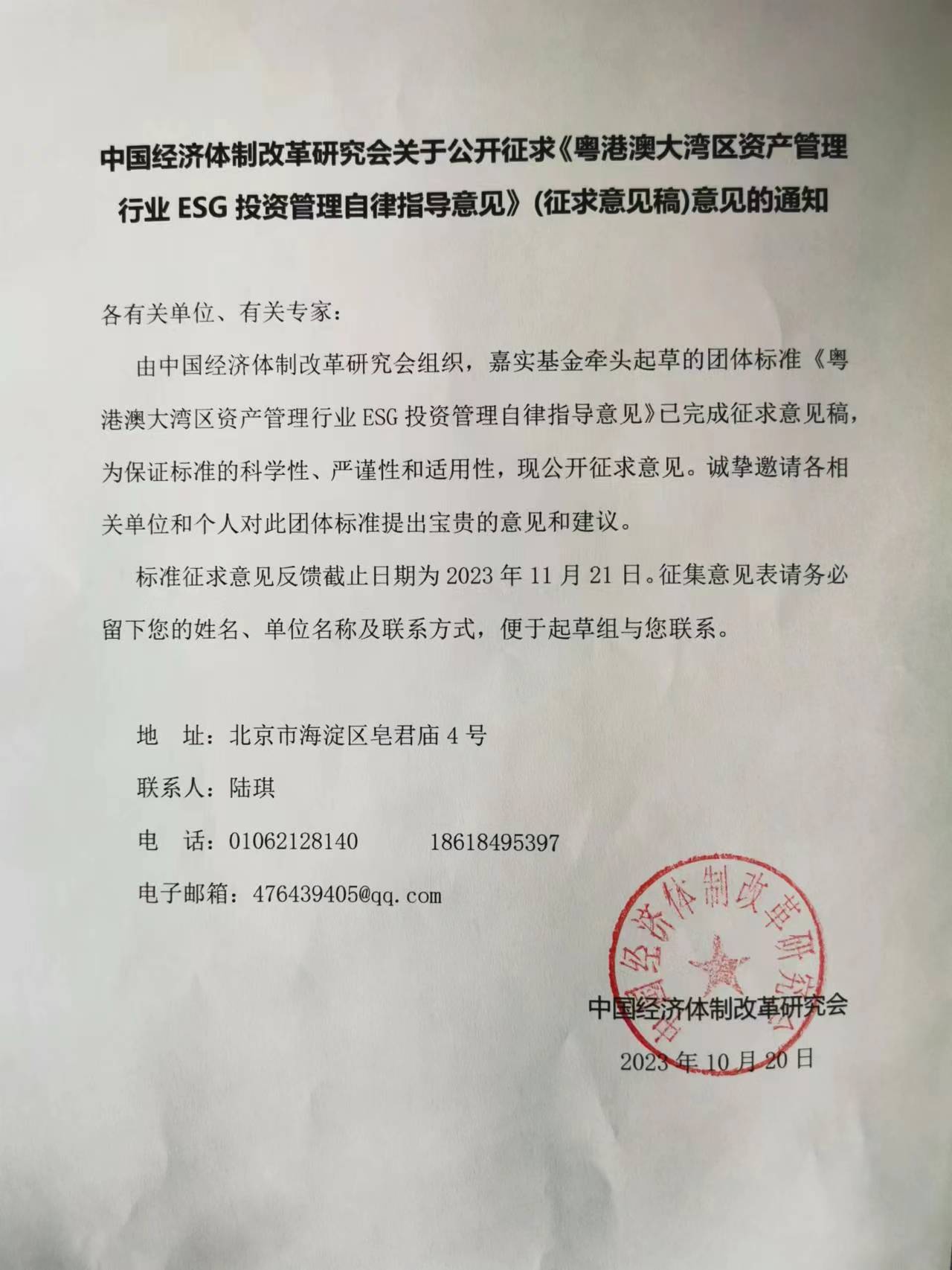 中国经济体制改革研究会关于公开征求对《粤港澳大湾区资产管理行业ESG投资管理自律指导意见》(征求意见稿)意见的通知.jpg