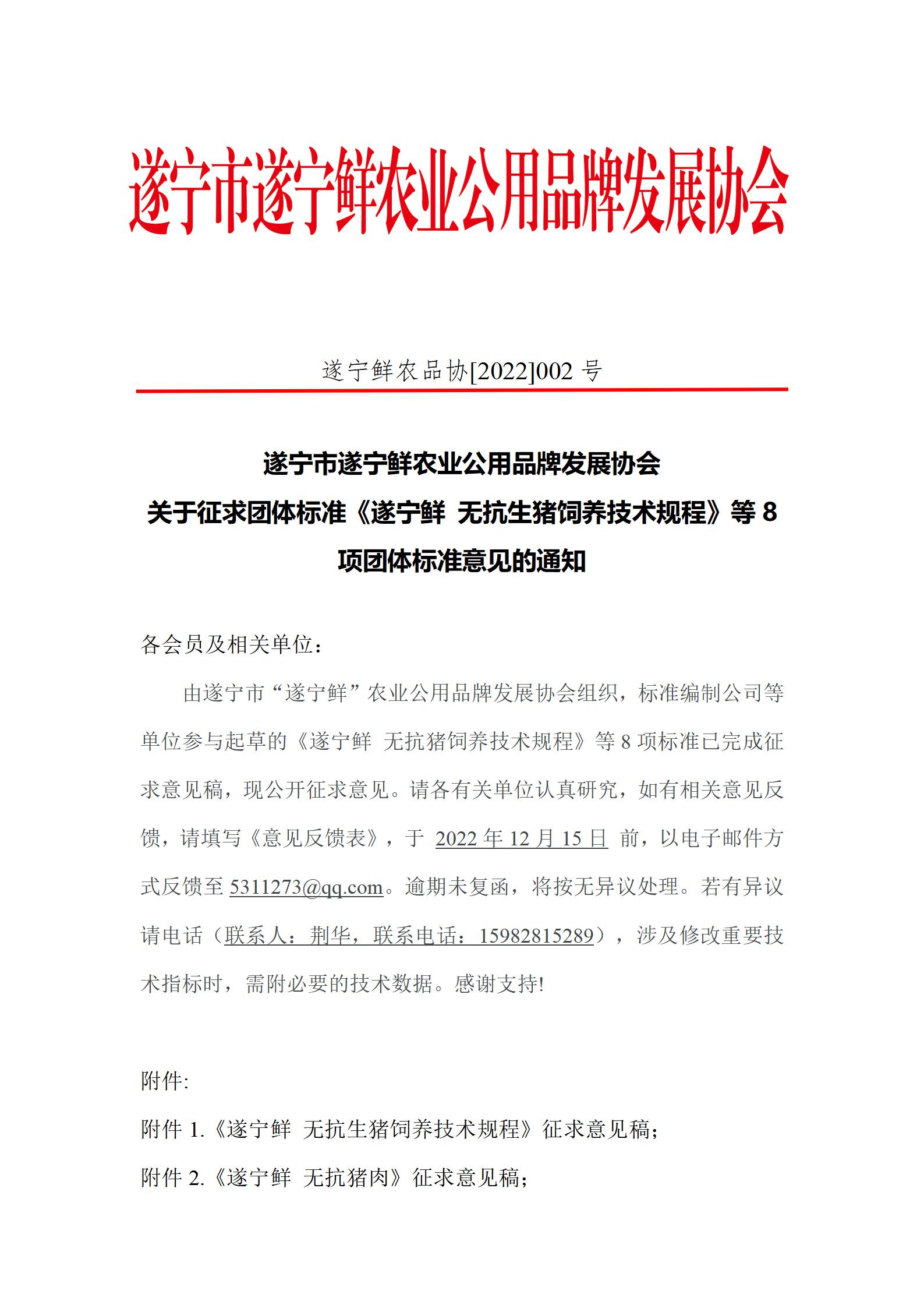 关于征求团体标准《遂宁鲜 无抗生猪饲养技术规程》等8项团体标准意见的通知1.jpg