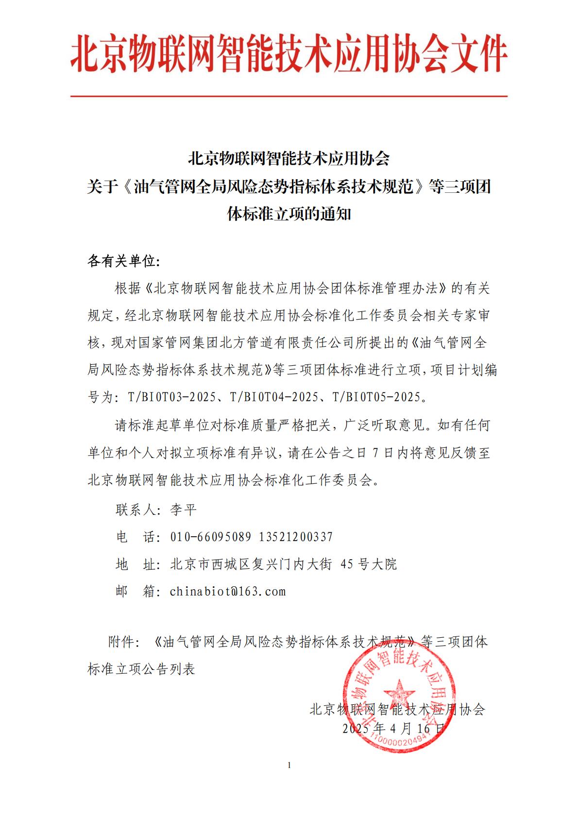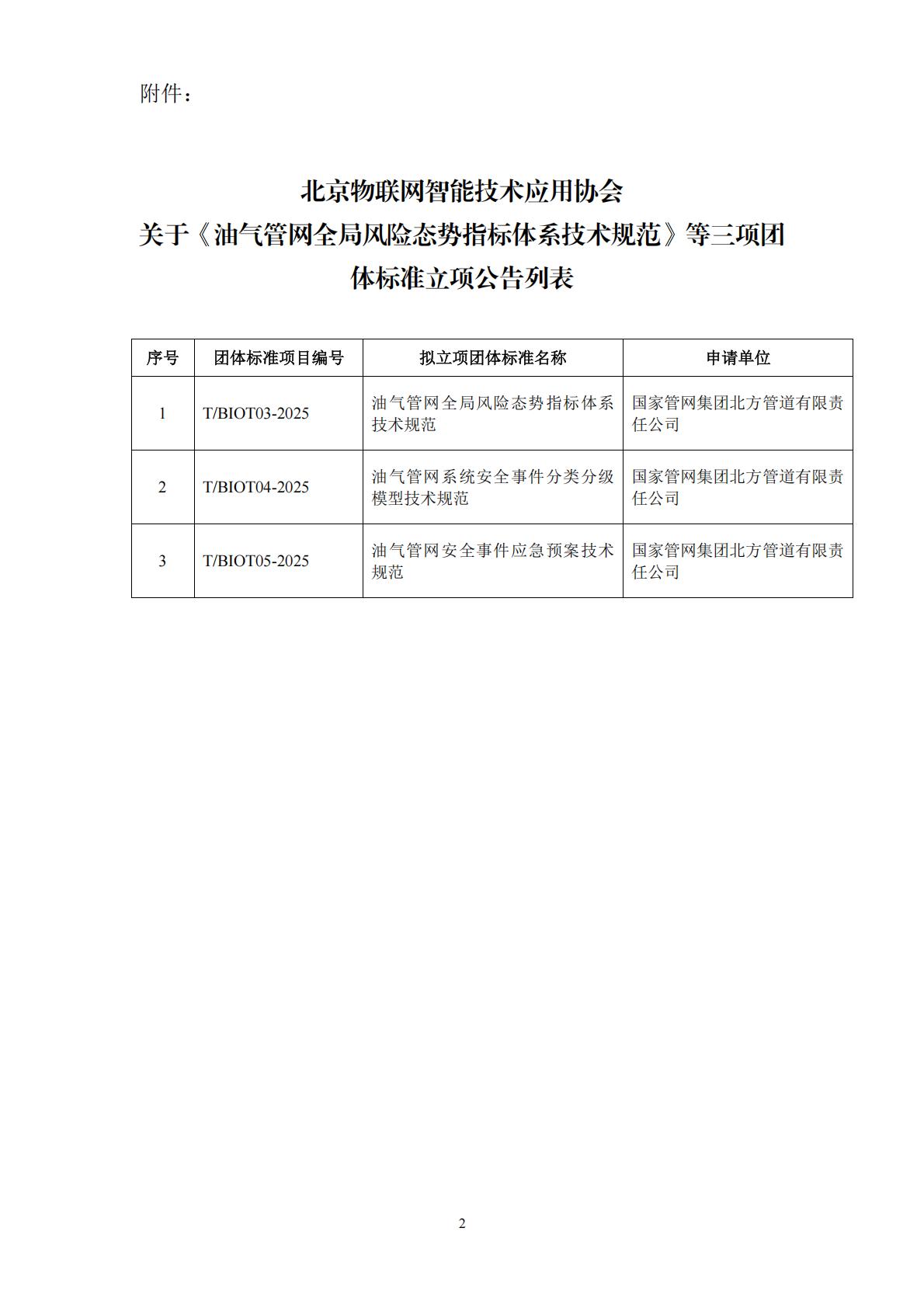 北京物联网智能技术应用协会关于《油气管网全局风险态势指标体系技术规范》等五项团 体标准立项的通知