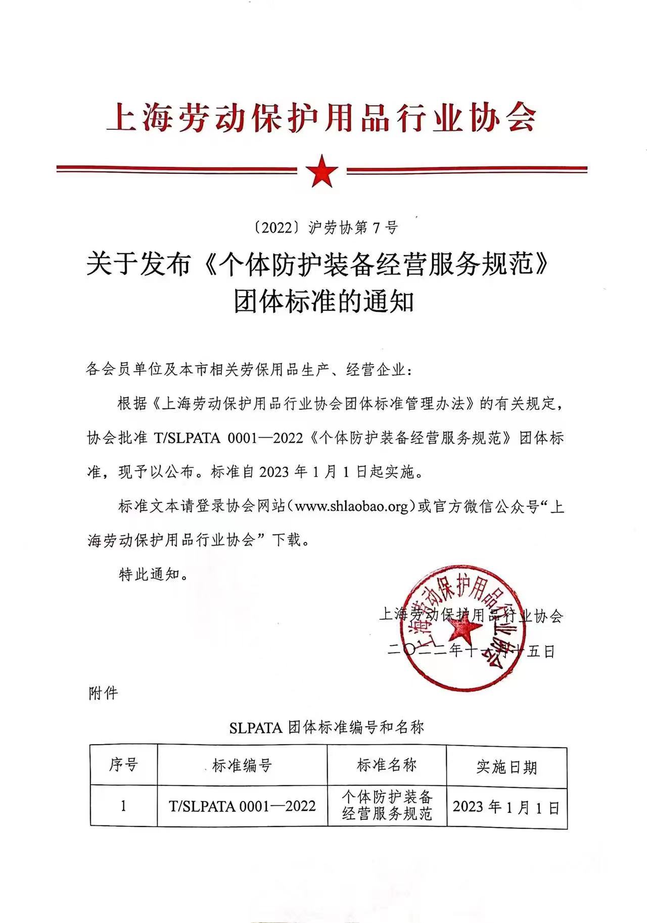 上海劳动保护用品行业协会关于发布《个体防护装备经营服务规范》团体标准的通知.jpg