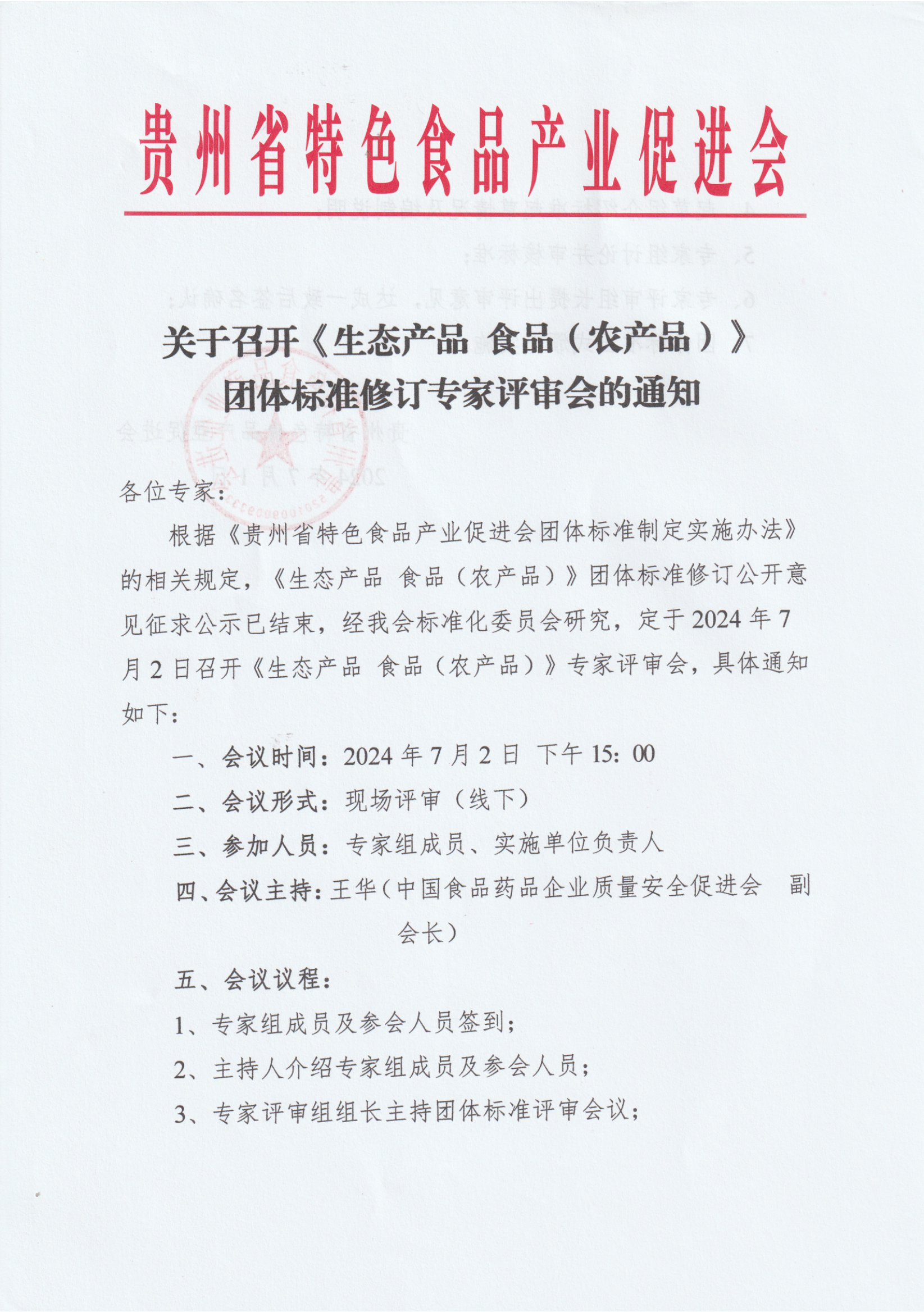 根据《贵州省特色食品产业促进会团体标准制定实施办法》的相关规定,《生态产品 食品(农产品)》团体标准修订公开意见征求公示已结束,经我会标准化委员会研究,定于2024年7月2日召开《生态产品 食品(农产品)》专家评审会,具体通知如下: