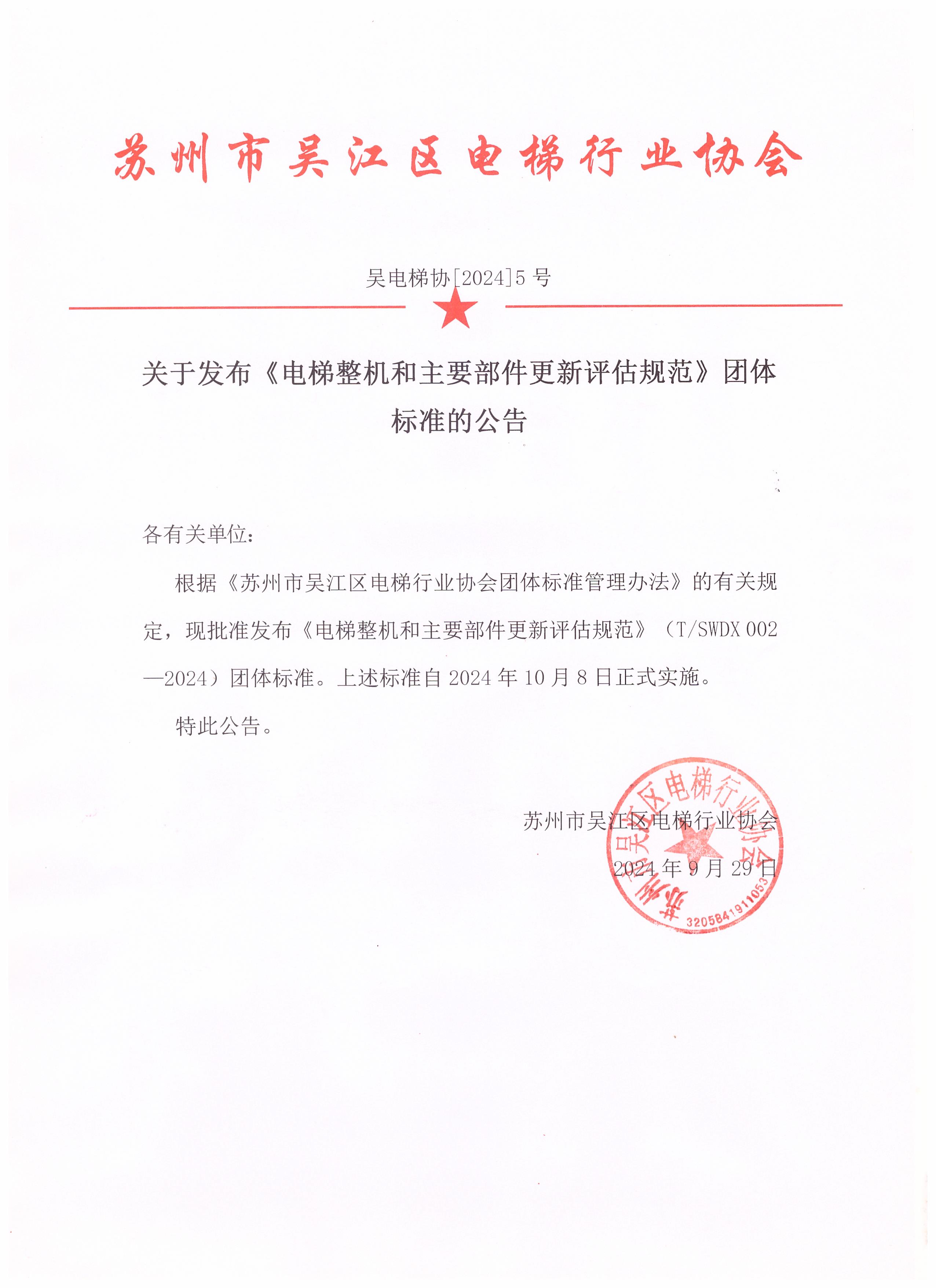 苏州市吴江区电梯行业协会关于发布《电梯整机和主要部件更新评估规范》团体标准的公告.jpg