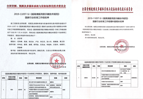 在工信部及全国音视频及多媒体系统与设备标准化技术委员会、以及中国医疗器械行业协会、国家医疗器械产业技术创新战略联盟、中国电子视像行业协会等大力指导支持下,在视听健康分会及联盟、C3D产业联盟、中国电子学会生命电子学分会、中国生物医学工程学会医学物理分会等联合组织下,由惠仁康宁(苏州)健康科技有限公司、中国电子技术标准化研究院、南京巨鲨显示科技有限公司、苏州惠仁康宁检测技术有限公司、北京高光文明科技有限公司等46家企事业单位联合参与起草制定的“超高清医用显示器技术规范”行业标准已经通过审定会专家审定形成报批稿,“医用显示器技术要求与测试方法”和“医用显示器测试评价规范”2项中国医疗器械行业协会团体标准已完成制定起草工作并提交报批。协会联盟下面要重点抓好医用显示器行业标准、团体标准的宣传与落地推广应用工作,促进我国医用显示器技术“产学研医检”合作开发与推广,优先纳入“中国视听健康产业技术创新与产品服务推广计划(2022-2023年)”并推进实施。