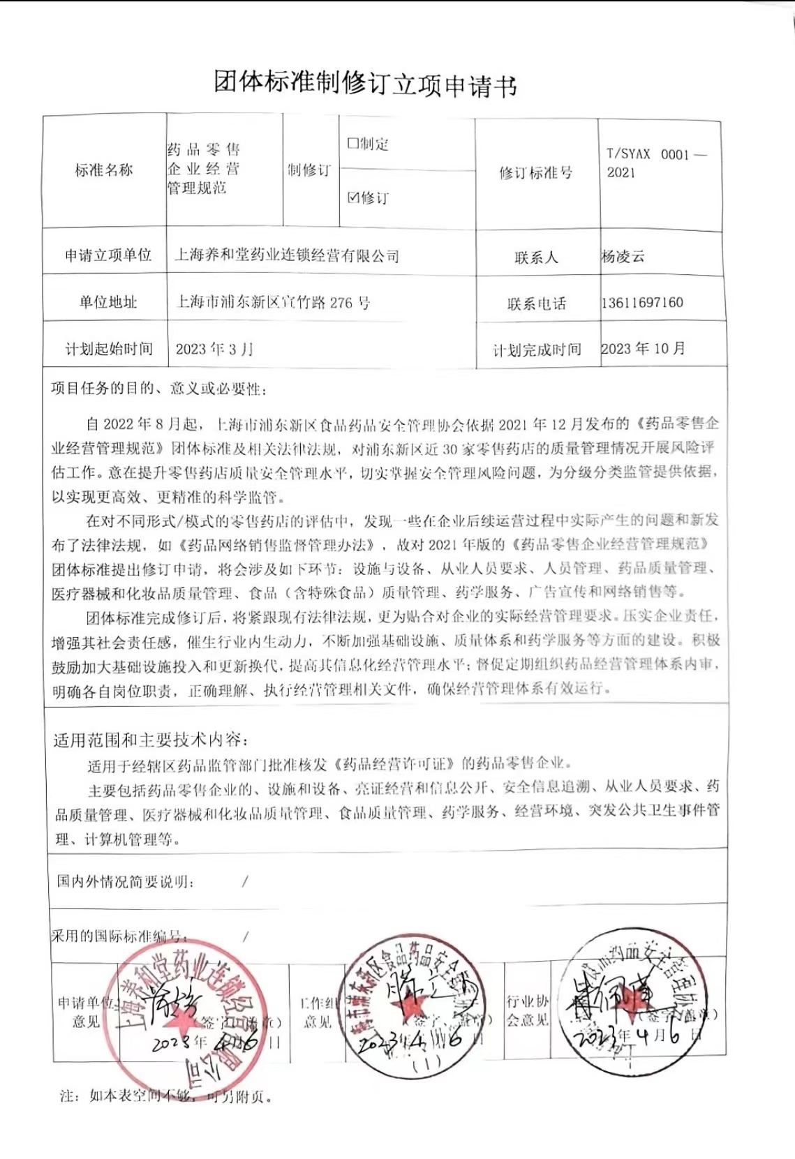 为更好的贯彻落实国务院《深化标准化工作改革方案》,及《上海市浦东新区食品药品安全管理协会团体标准管理办法》的有关规定,根据此团体标准的实际运用情况,依据市场需求,经研究论证,增加和调整部分条款,确定《药品零售企业经营管理规范》团体标准进行立项,我协会将牵头开展此团体标准的修订工作,特此公告。