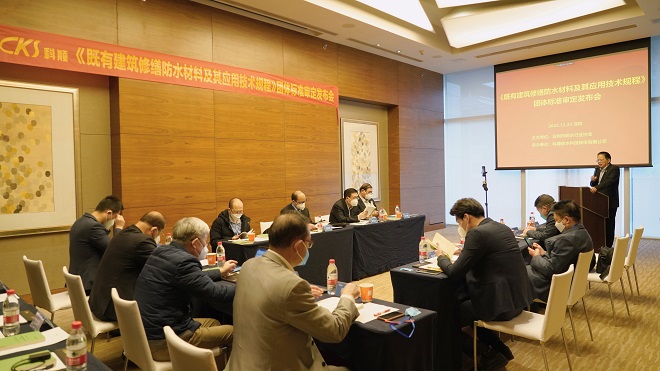 2022年12月23日,深圳市防水行业协会在深圳君悦酒店采用线上和线下的方式组织召开了《既有建筑修缮防水材料及其应用技术规程》团体标准审定发布会。科顺防水科技股份有限公司独家承办本次活动。
