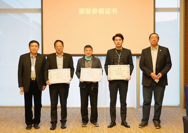 最后,朱冬青教授上台为现场的编制组成员颁发参编证书,并与瞿培华教授、赵春山研究员、朱德明教授、张勇博士、羡永彪教授上台宣布《既有建筑修缮防水材料及其应用技术规程》团体标准正式发布。