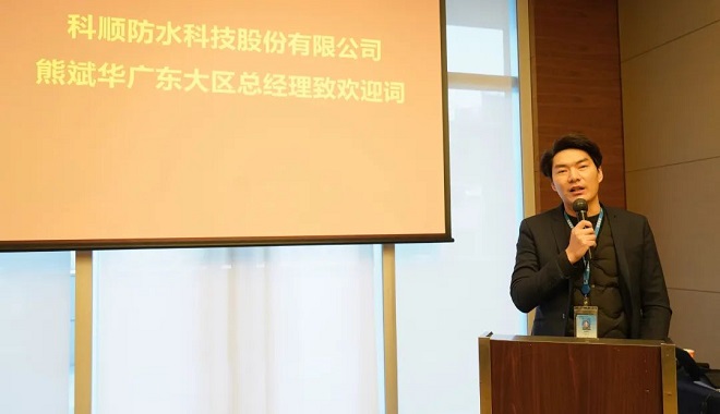 科顺股份广东大区总经理熊斌华热烈欢迎参加本次审定发布会的专家、领导。他表示,在建筑存量市场快速增长的新起点上,建筑修缮防水材料团体标准的出台恰逢其时。我们应更关注品质、关注规范化发展,以责任和智慧,共同树立中国建筑修缮的口碑。