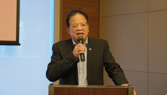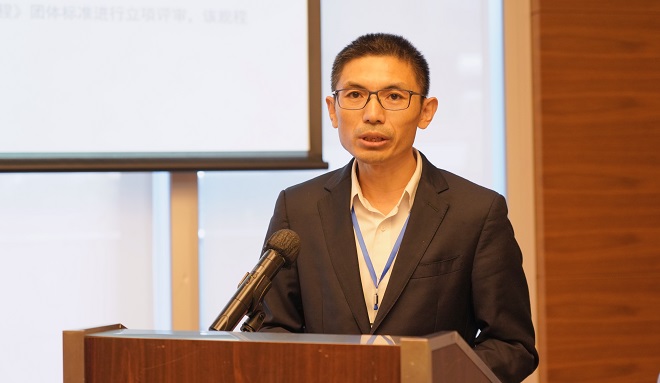 深圳市市政工程质量安全监督总站副总工程师汪全信讲话。他表示,感谢行业协会、各防水企业、防水技术专家等,在本次团体标准的编订中作出不懈努力。此标准的建立实施,将会推动建筑修缮领域规范化、标准化,并促进建筑修缮质量和既有建筑品质提升,切实提升居民获得感。