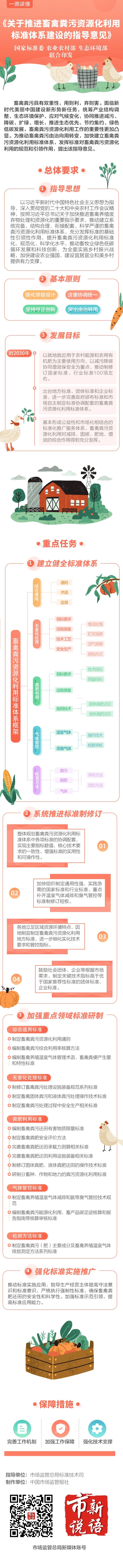 为贯彻落实党中央、国务院加快推动畜禽粪污资源化利用的决策部署,充分发挥标准对畜禽粪污资源化利用的规范和引领作用。近日,国家标准委、农业农村部、生态环境部联合印发《关于推进畜禽粪污资源化利用标准体系建设的指导意见》(以下简称《指导意见》)。这是国家层面首次围绕全链条畜禽粪污资源化利用提出的标准体系建设指导意见。