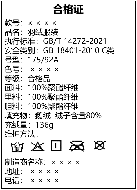“一看”——看羽绒服上的合格证和水洗标签