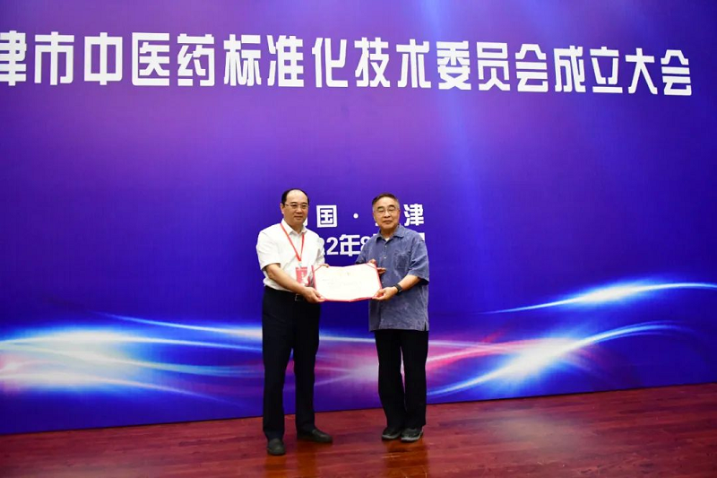 王建国副主席、张伯礼院士为天津市中医药标准化技术委员会揭牌。第一届标委会由来自高等院校、医疗机构、科研机构、中医药企业的34名专家成员组成,张伯礼院士任主任委员,郭义任常务副主任委员,李正任副主任委员,张俊华任副主任委员兼秘书长。秘书处由天津中医药大学承担,市卫生健康委负责日常管理和业务指导。