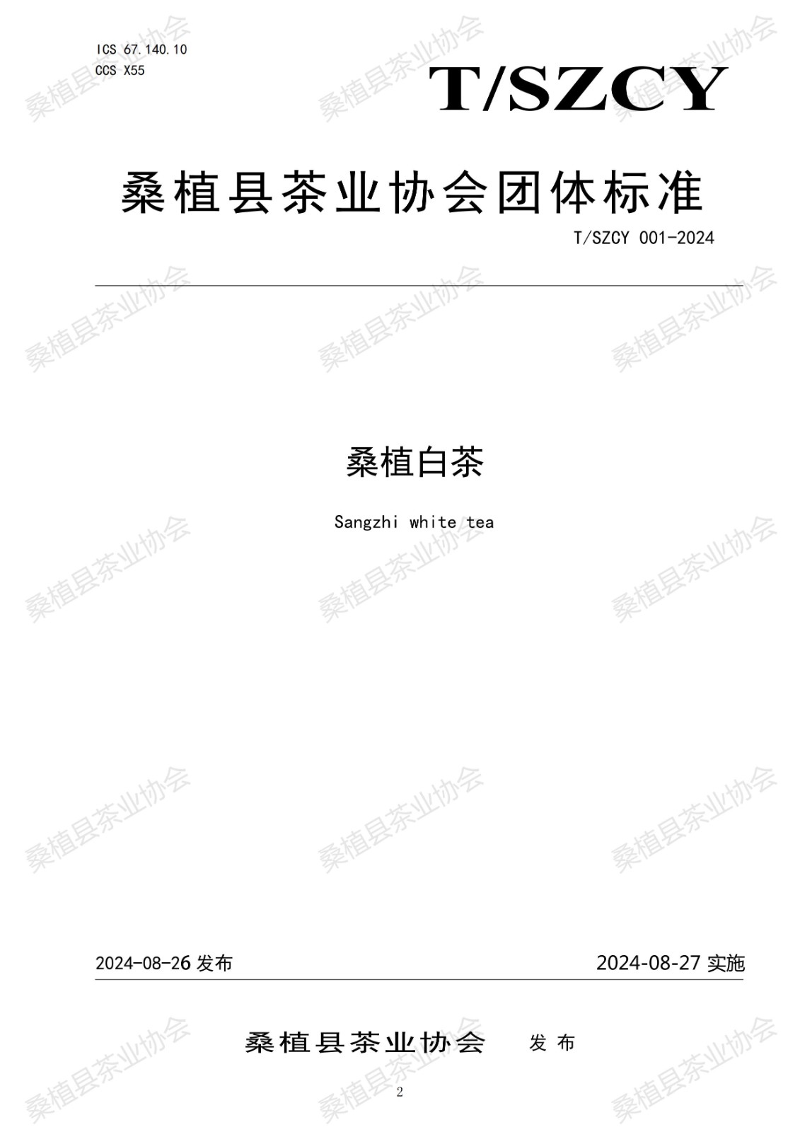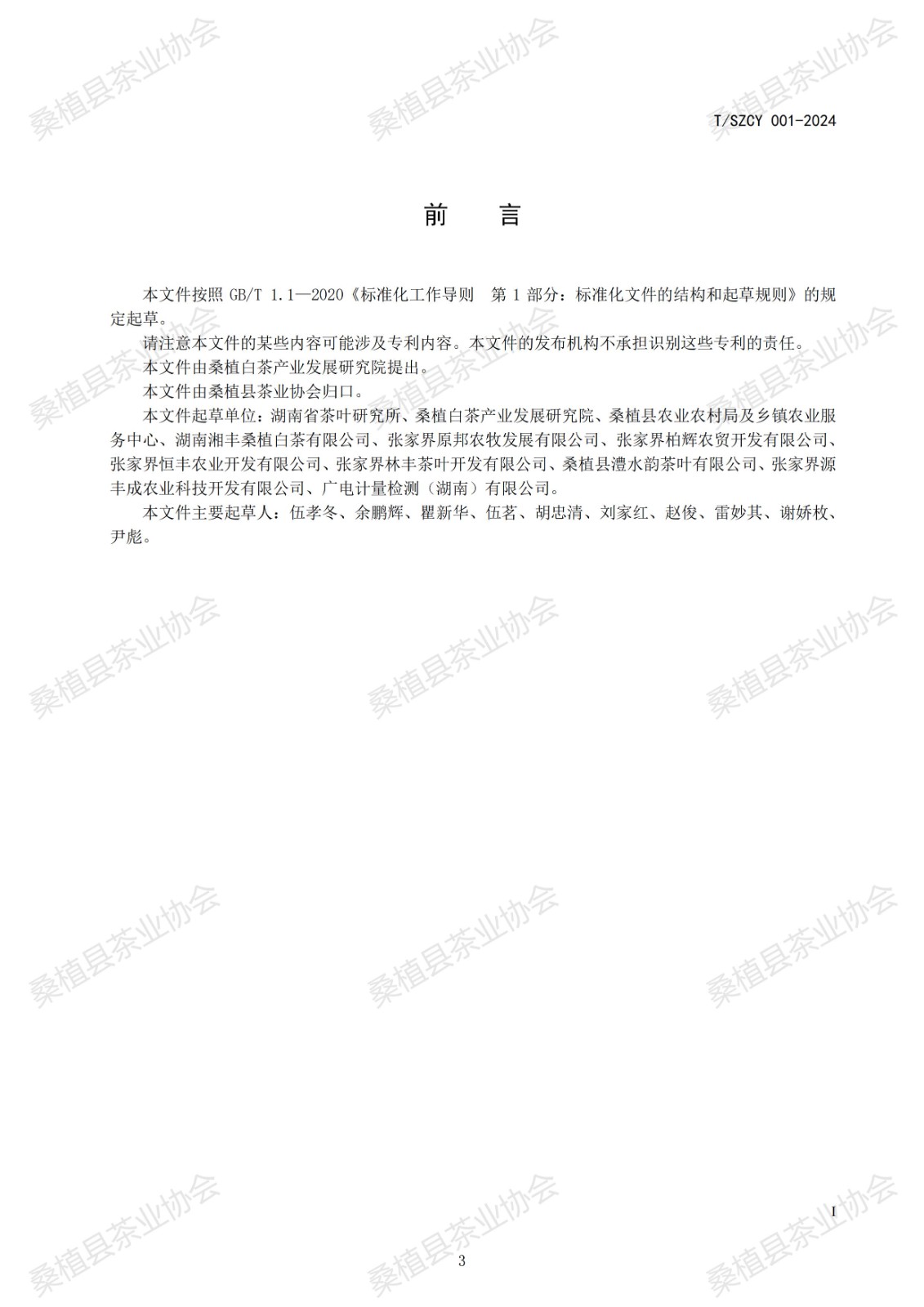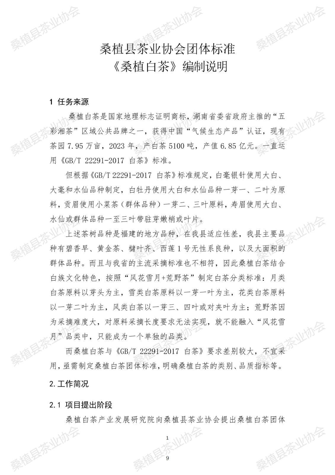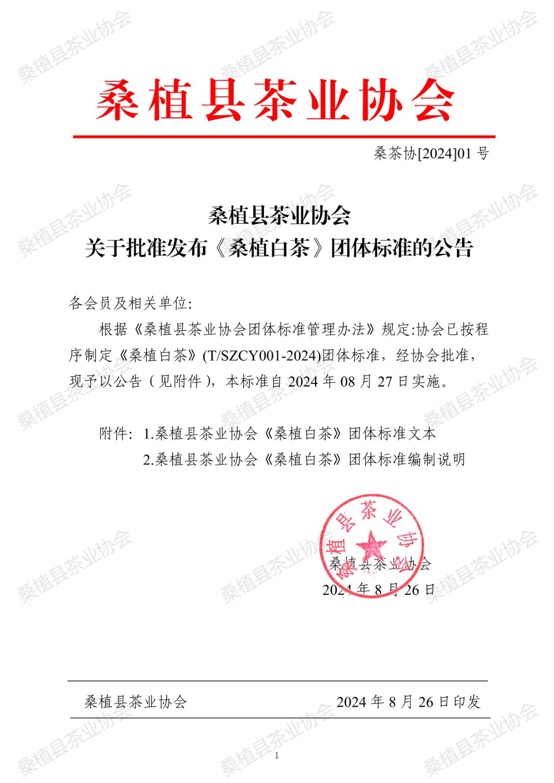 桑植县茶业协会 关于批准发布《桑植白茶》团体标准的公告
