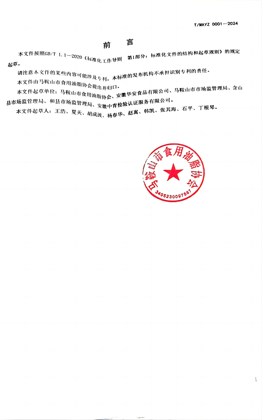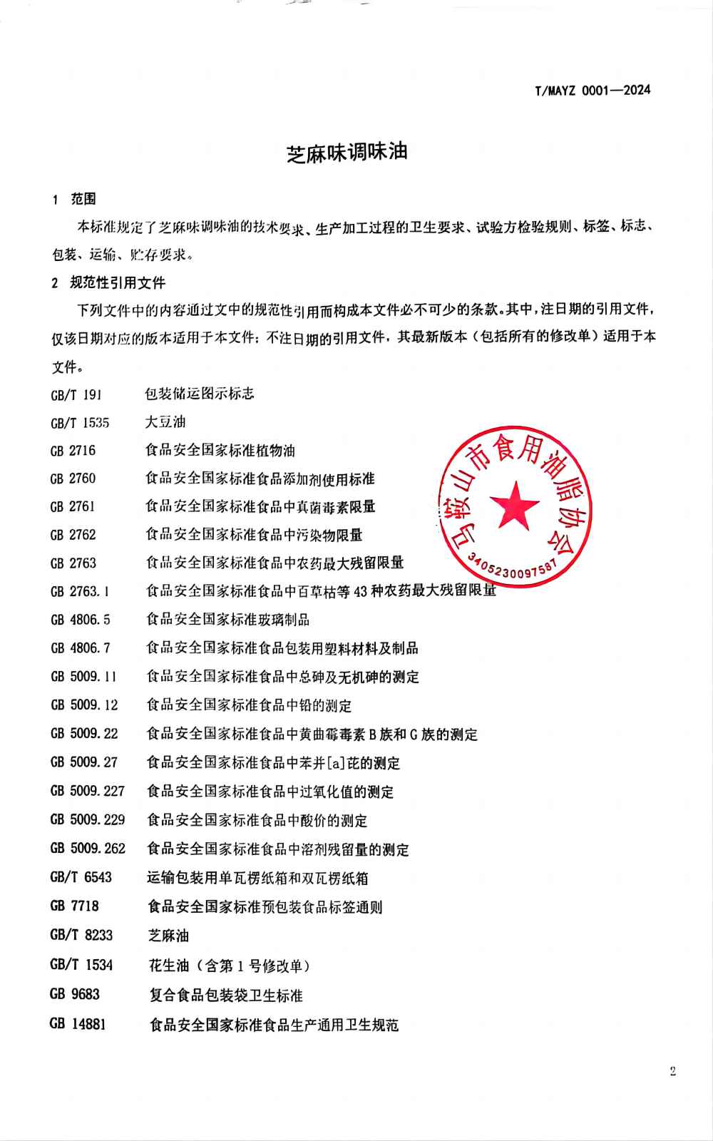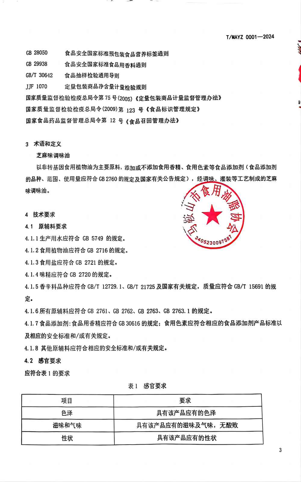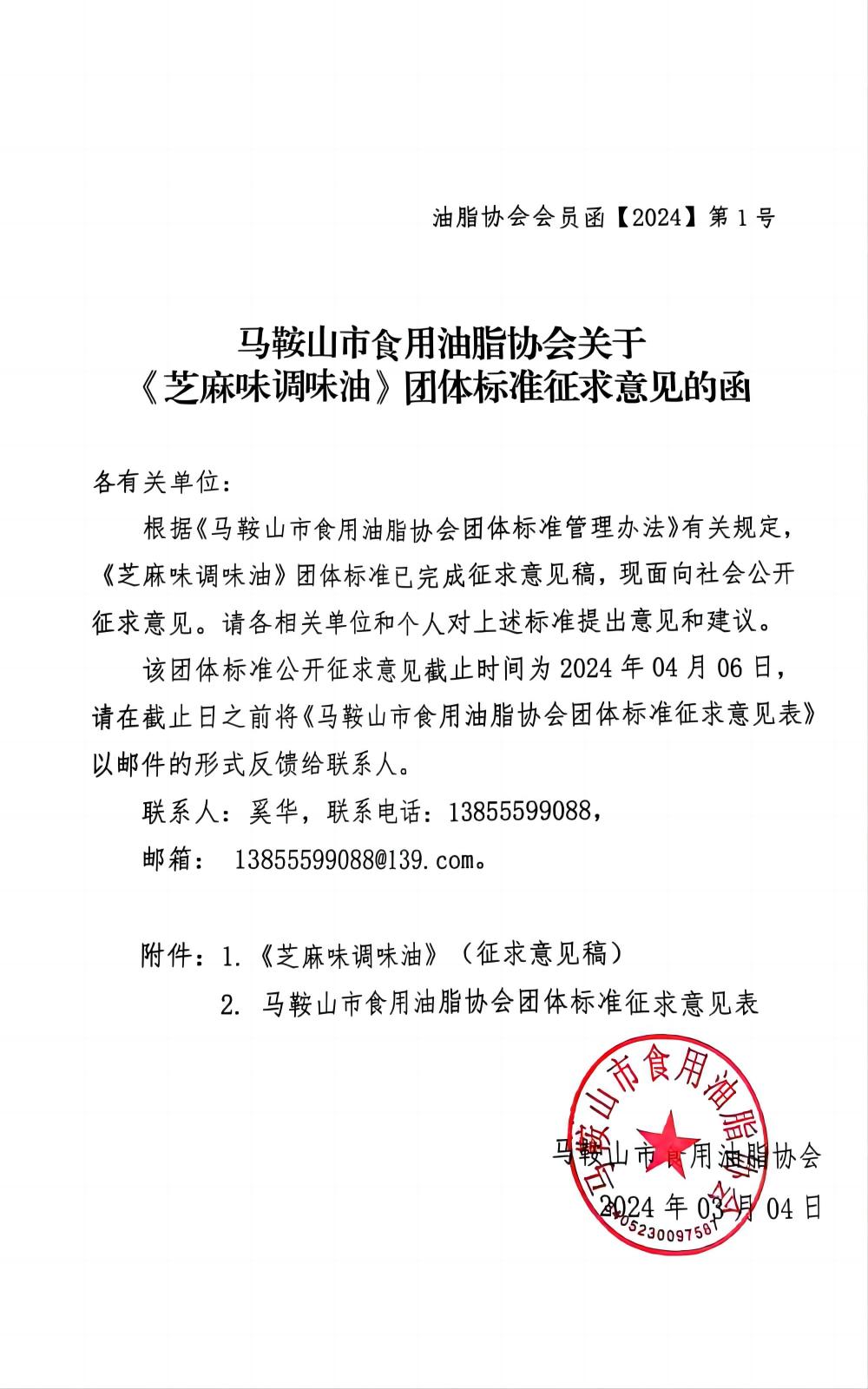 马鞍山食用油脂协会《芝麻味调味油》团体标准征求意见稿