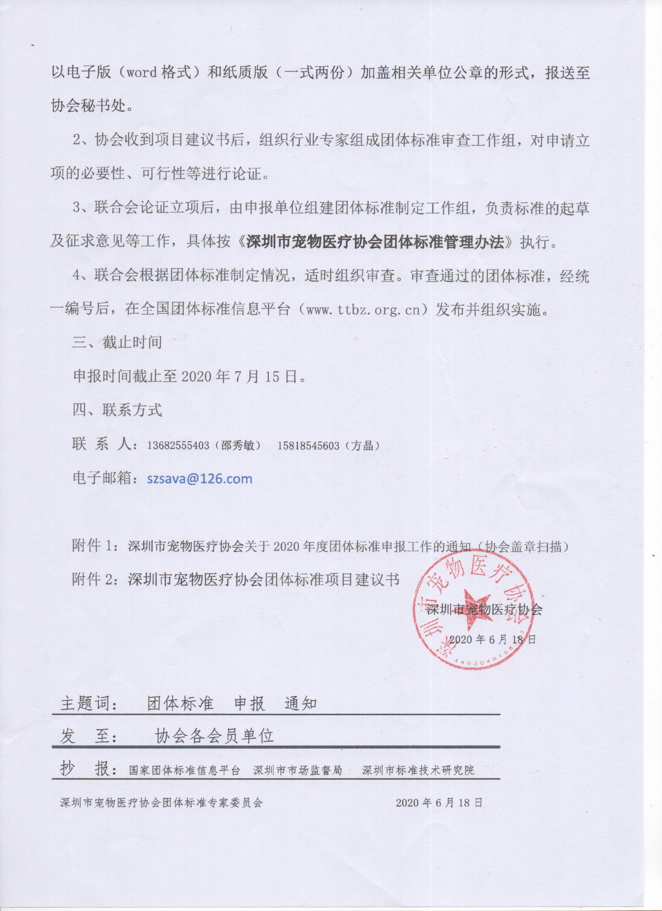 附件1:深圳市宠物医疗协会关于2020年度团体标准申报工作的通知(协会盖章扫描)