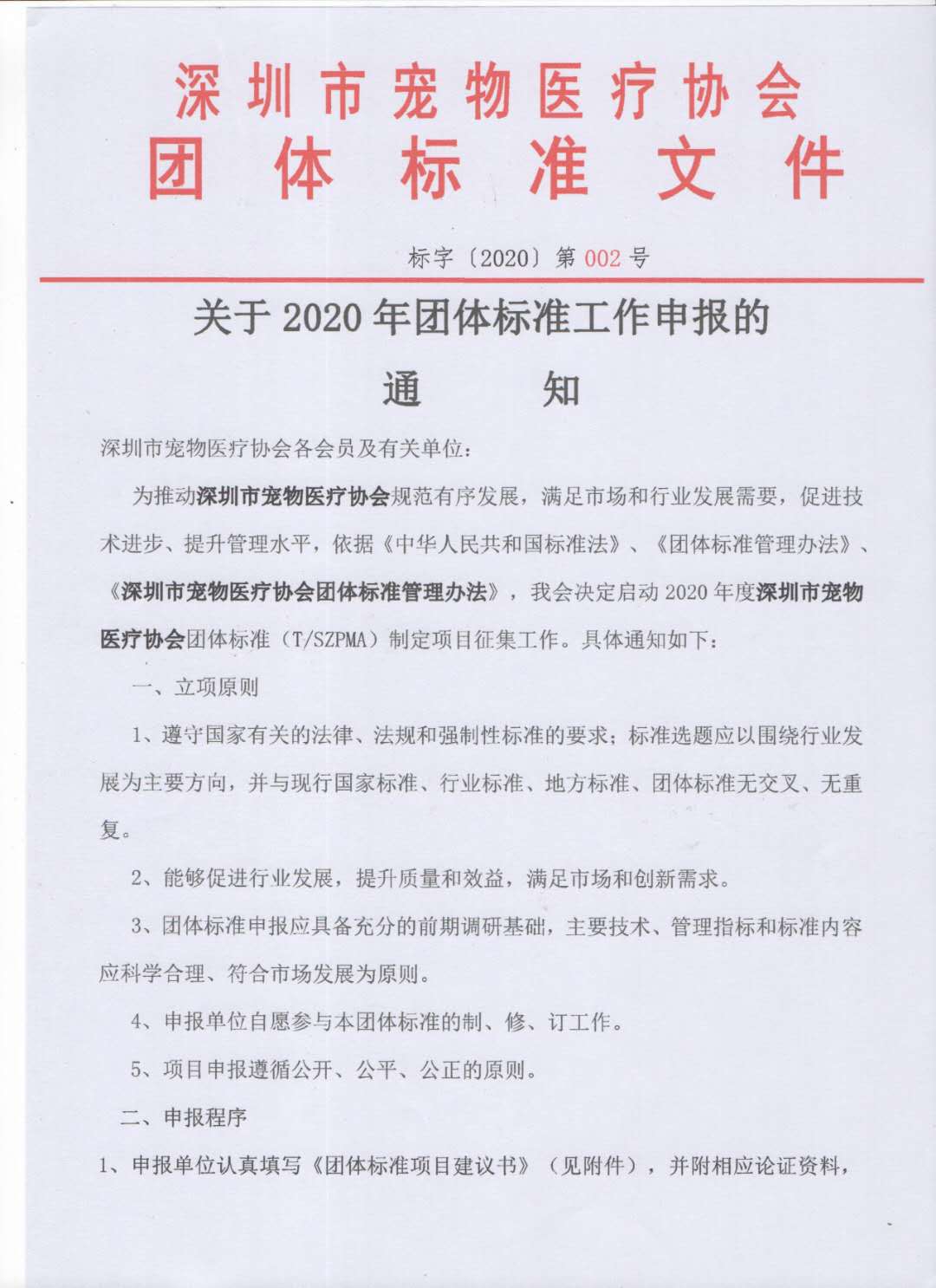 为推动深圳市宠物医疗协会规范有序发展,满足市场和行业发展需要,促进技术进步、提升管理水平,依据《中华人民共和国标准法》、《团体标准管理办法》、《深圳市宠物医疗协会团体标准管理办法》,我会决定启动2020年度深圳市宠物医疗协会团体标准(T/SZPMA)制定项目征集工作。具体通知如下: