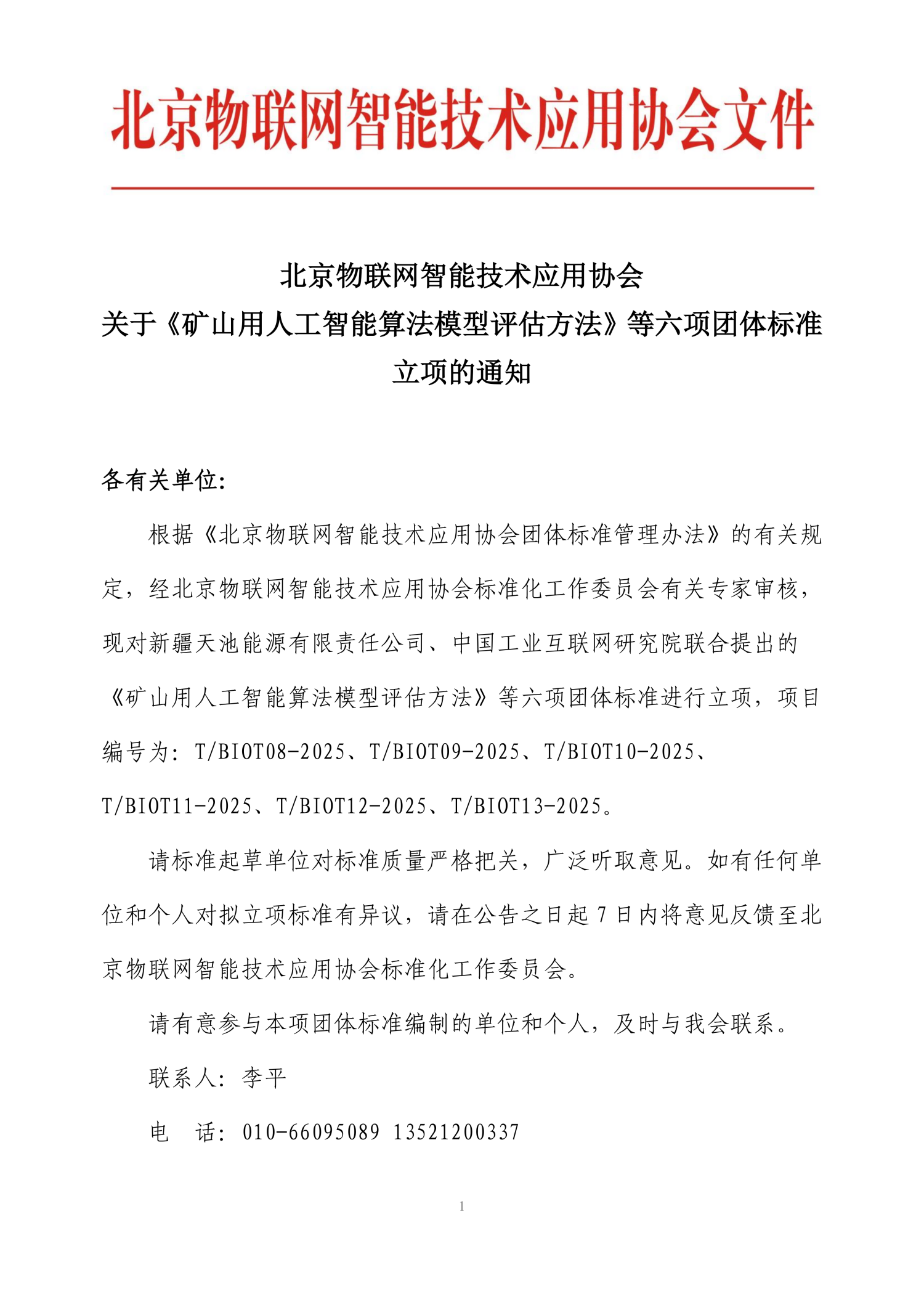 北京物联网智能技术应用协会关于《矿山用人工智能算法模型评估方法》等六项团体标准立项通知