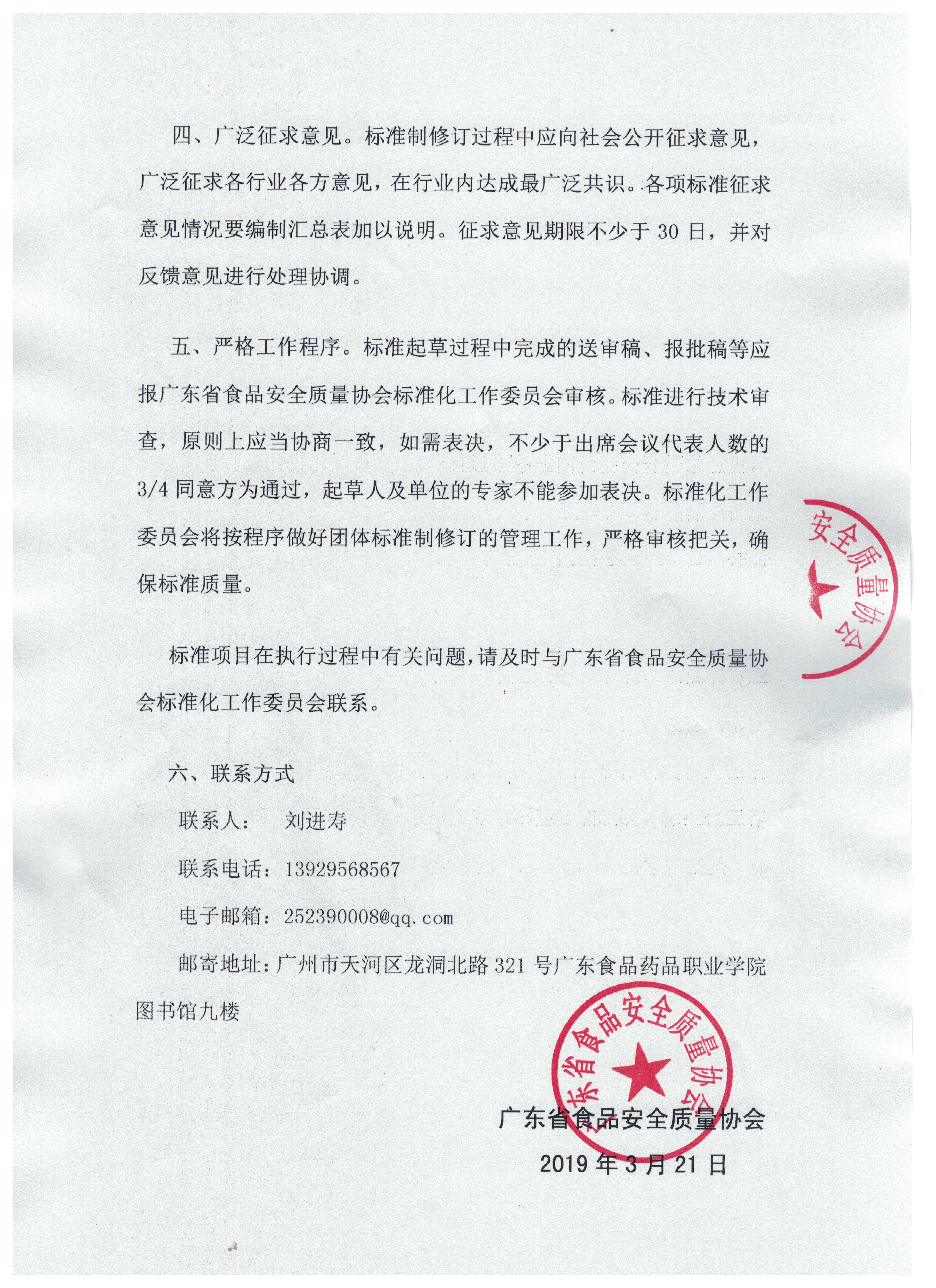 标准项目在执行过程中有关问题,请及时与广东省食品安全质量协会标准化工作委员会联系。
