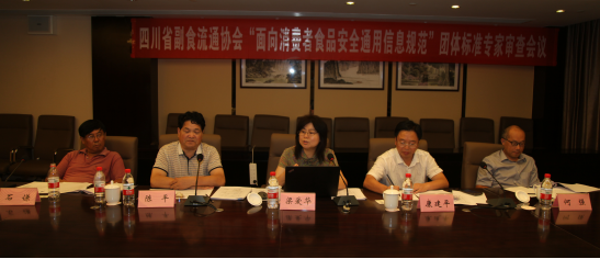 会上来自四川省食品安全专家委员会主任/四川旅游学院梁爱华教授、 四川省食品发酵工业研究设计院常务副总工程师/教授级高工康建平、成都信息工程大学信息工程管理系系主任/成都市农业委员会信息化专家委员/四川省政府旅游发展委员会专家委员陈平教授、四川大学农产品加工研究院院长/四川大学轻纺与食品学院副院长/博士生导师何强教授、四川省动物卫生监督所所长/动物卫生监督执法总队石谦等5名专家组成的评审组对团体标准《面向消费者食品安全通用信息规范》进行了会议评审。