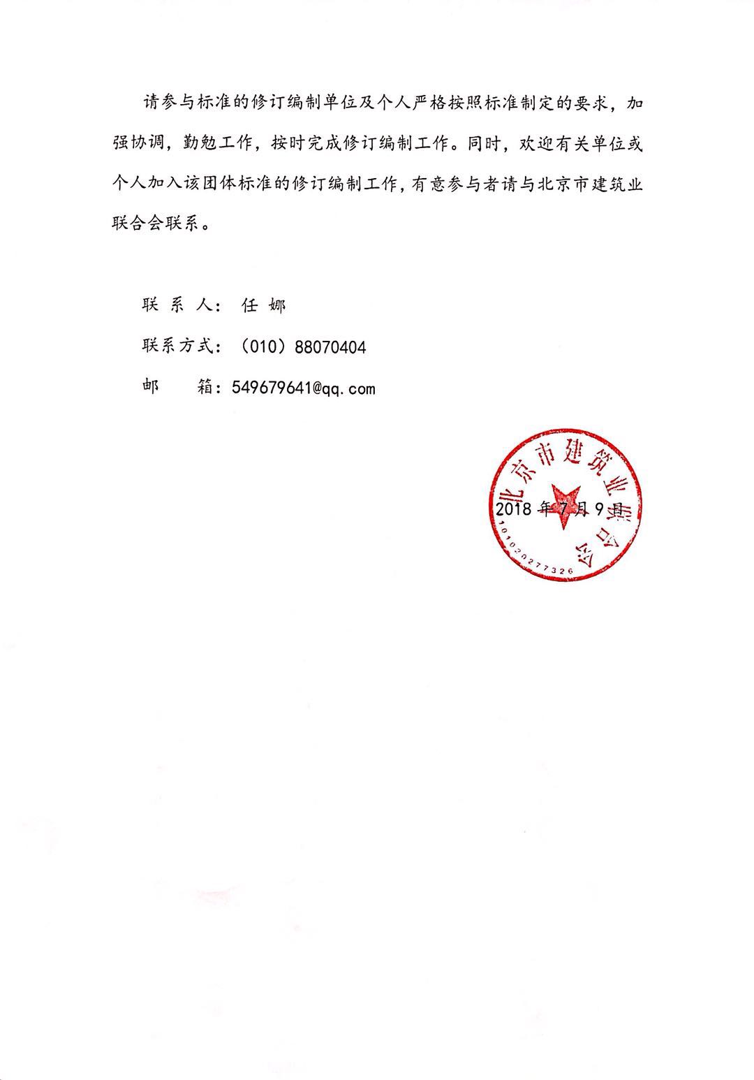 请参与标准的修订编制单位及个人严格按照标准制定的要求,加强协调,勤勉工作,按时完成修订编制工作。同时,欢迎有关单位或个人加入该团体标准的修订编制工作,有意参与者请与北京市建筑业联合会联系。