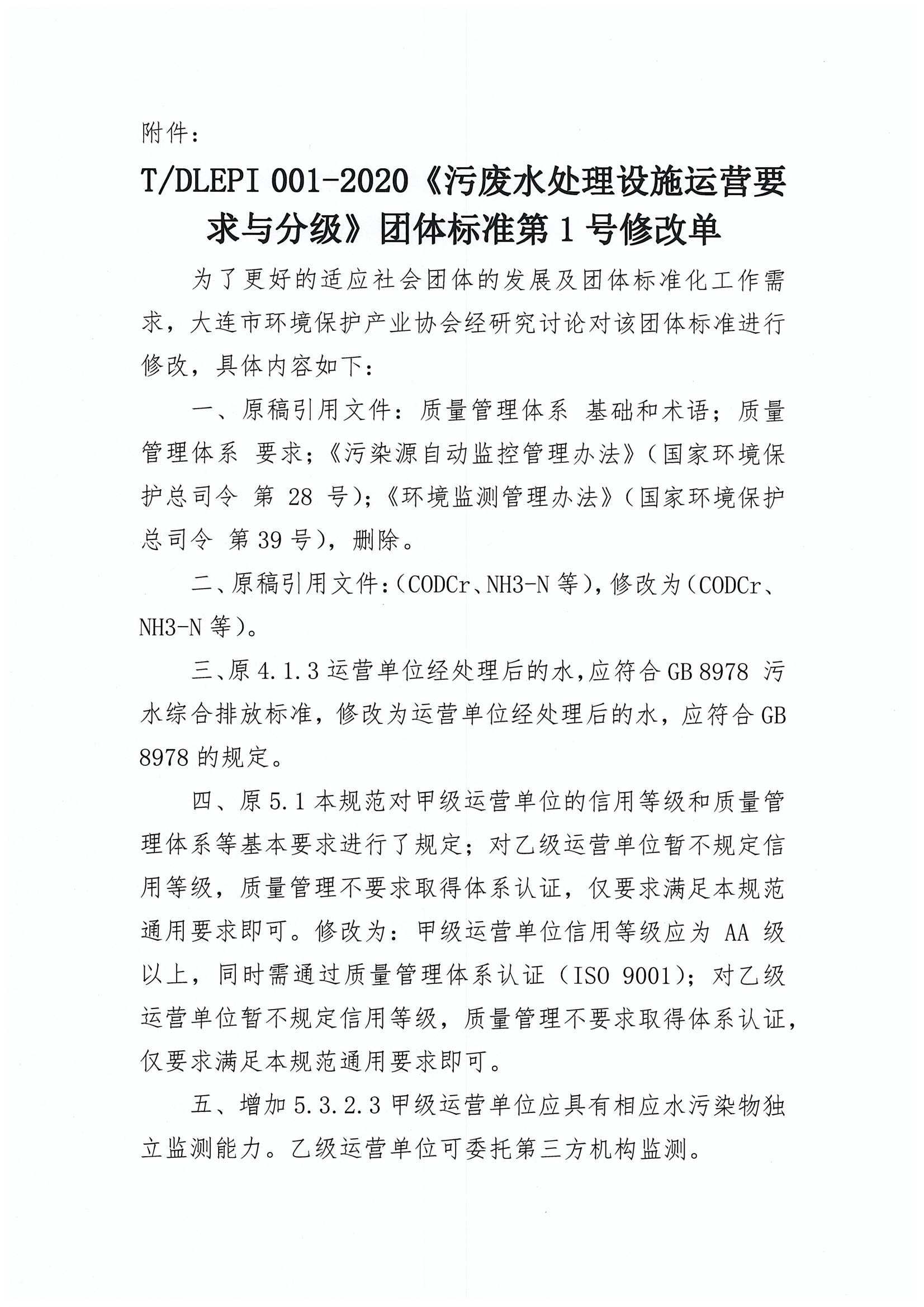 TDLEPI 001-2020《污废水处理设施运营要求与分级》团体标准第1号修改单.jpg