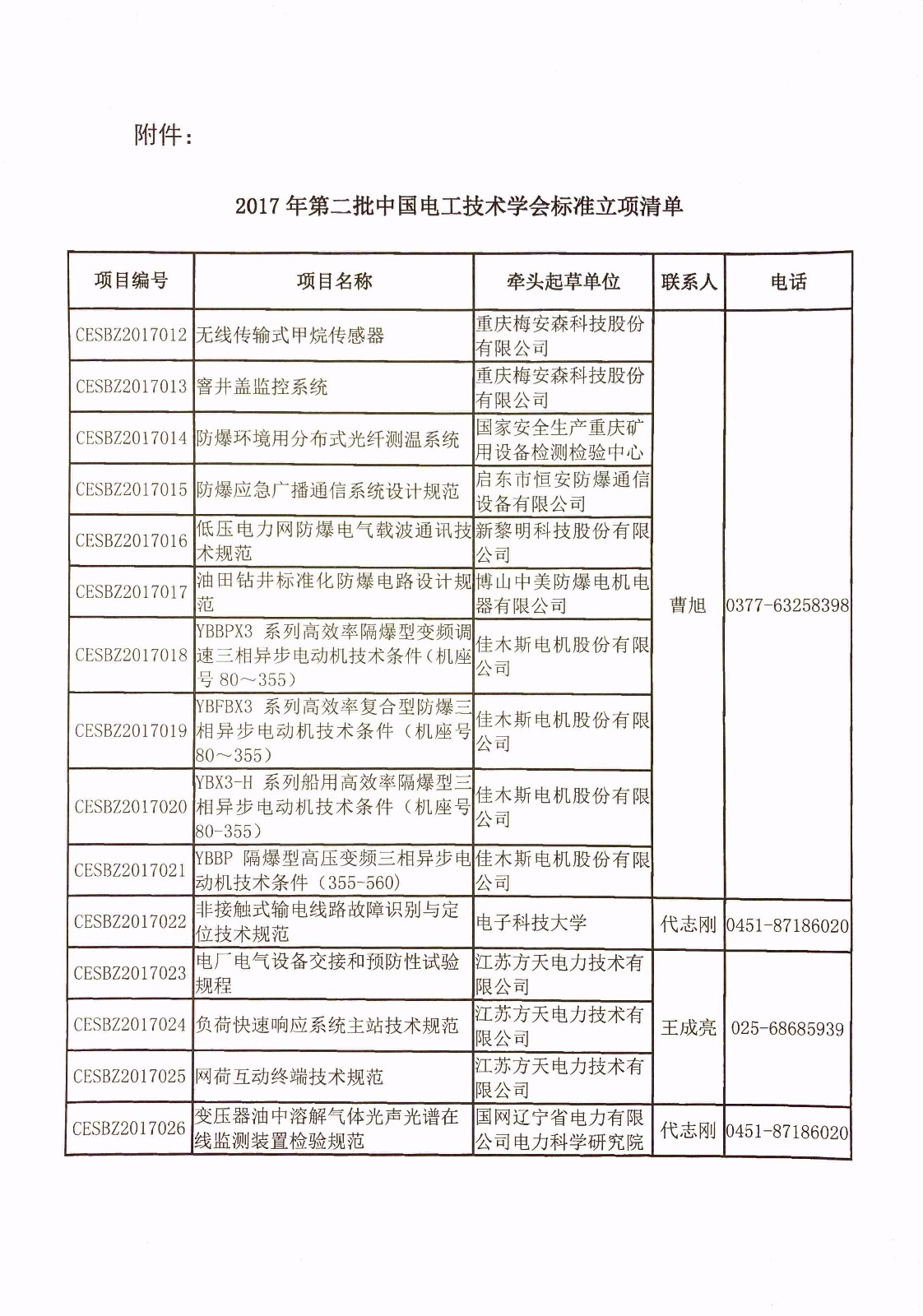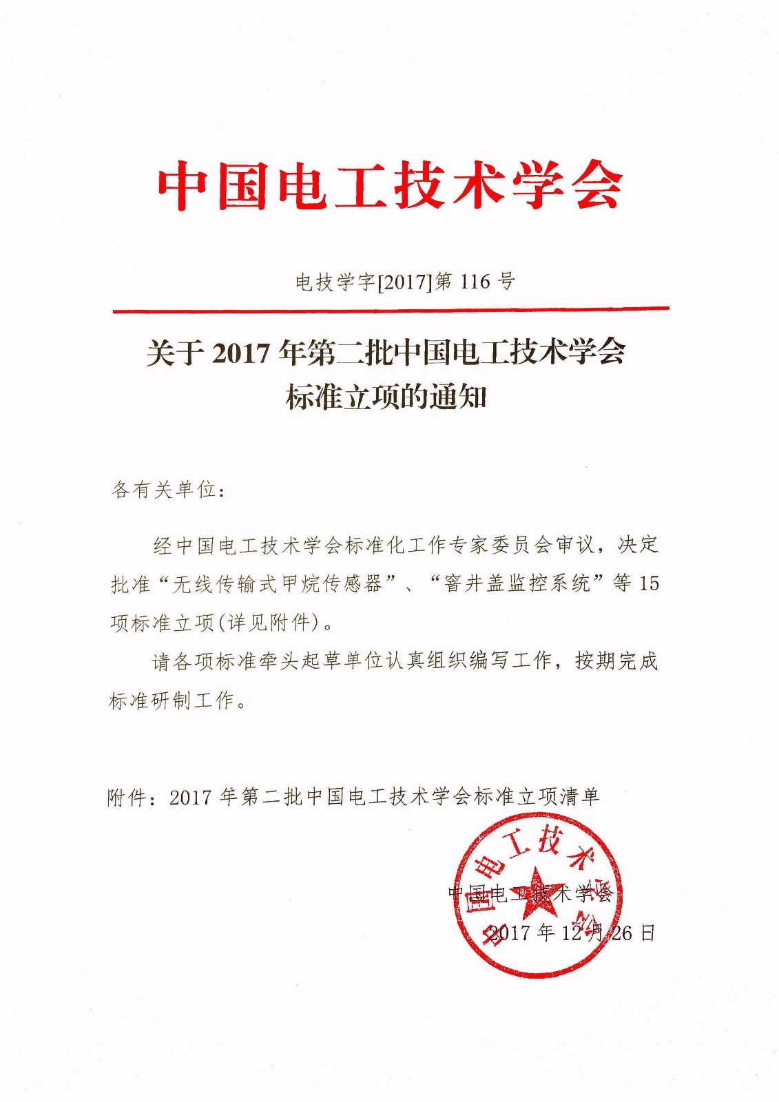 经中国电工技术学会标准化工作专家委员会审议,决定批准“无线传输式甲烷传感器”、“窨井盖监控系统”等15项标准立项(详见附件)。