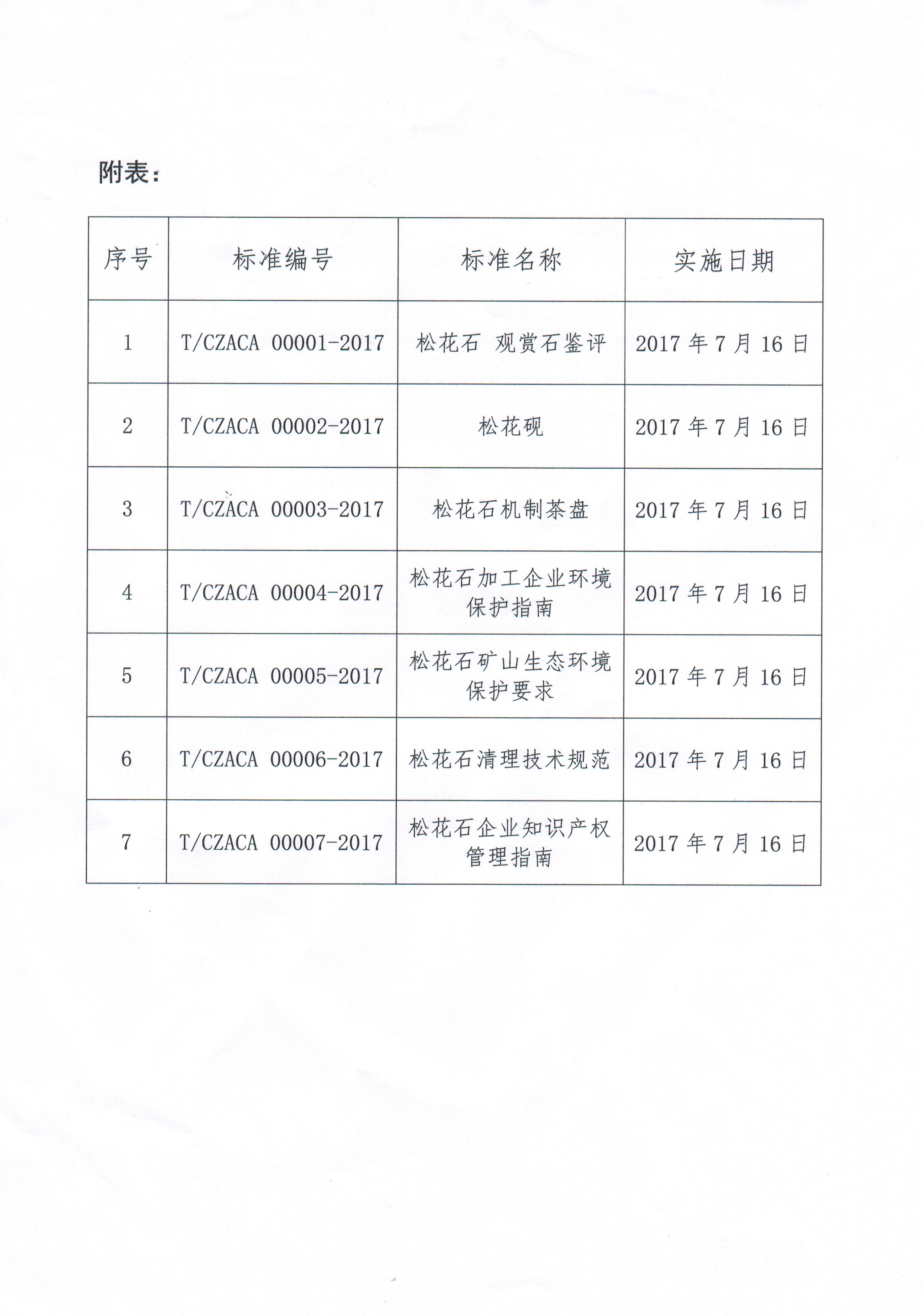 1 | T/CZACA 00001-2017 | 松花石 观赏石鉴评 | 2017年7月16日 |