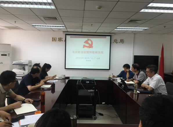 6月8日,国家标准委办公室公布了首批40家党建标准化试点单位名单。质检总局法规司积极申请,成为首批试点单位之一。动员培训结束后,许新建以《浅谈依法治国和依法治党》为题,给全体党员干部讲“七一”党课。